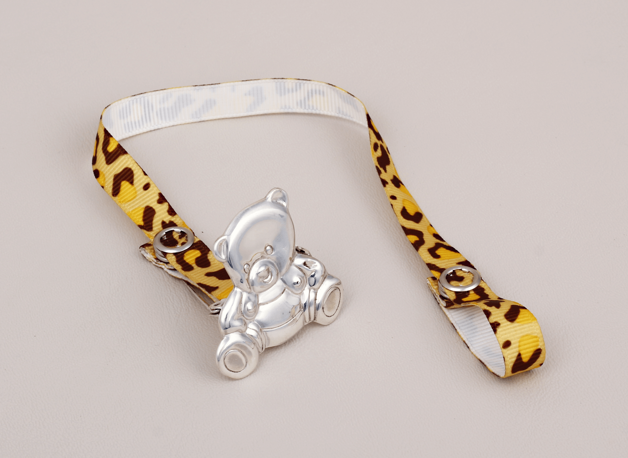 Porta Chupón Plata Oso Gr Cinta